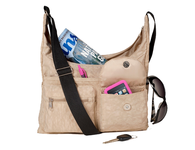 - 6 outside pockets and compartments in various sizes